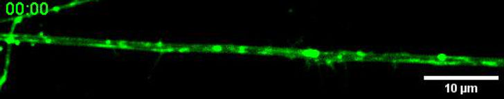 Lysosight Green labeled lysosome transport inside live axons. Data courtesy Prof. Aurnab Ghose and Mr. Avik Bardhan, IISER Pune.